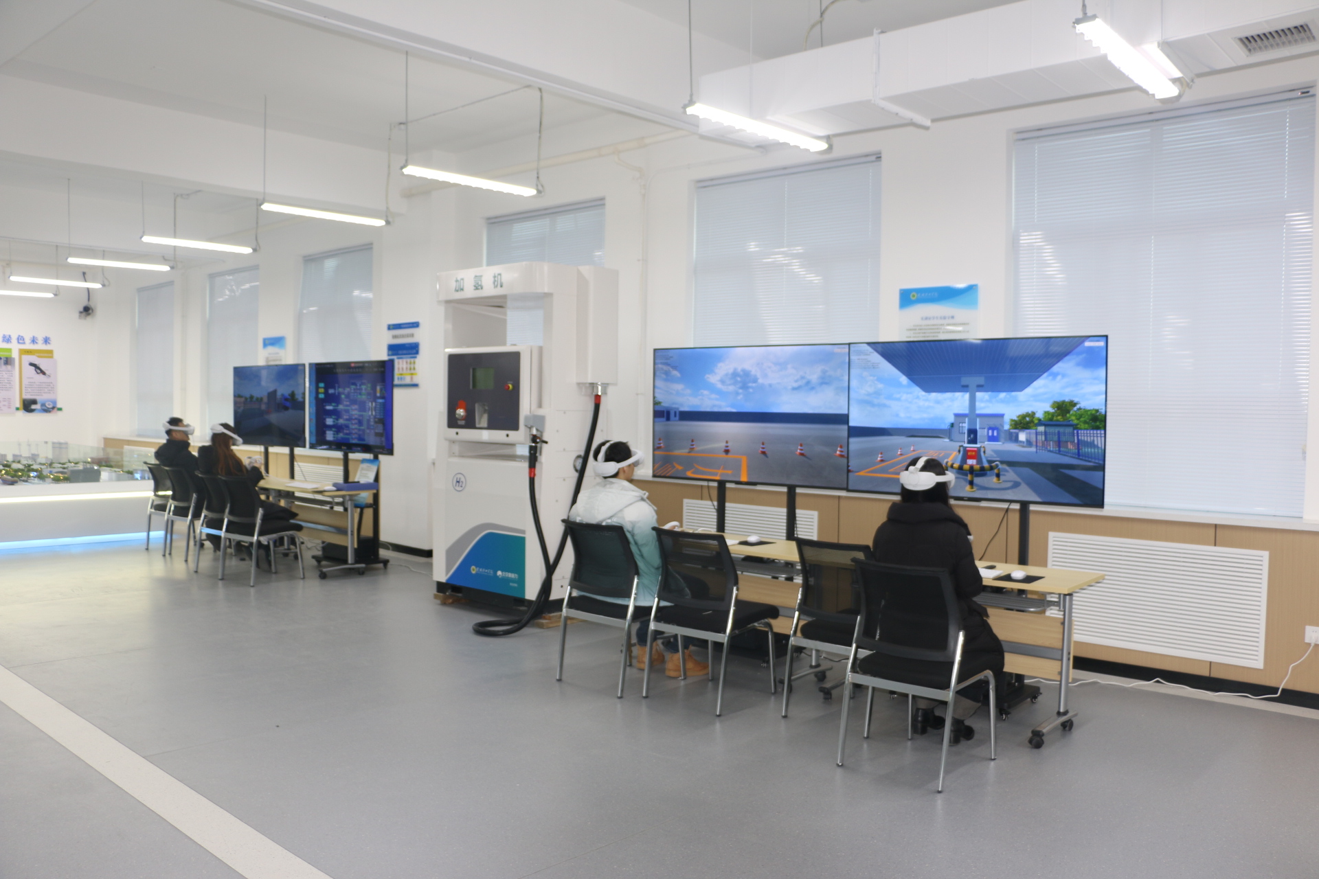 本實(shí)訓(xùn)室配備了1臺(tái)加氫機(jī)和4臺(tái)虛擬現(xiàn)實(shí)(VR)設(shè)備,能夠開展加氫站結(jié)構(gòu)認(rèn)知實(shí)訓(xùn)、加氫站工作流程實(shí)訓(xùn)、加氫站設(shè)備運(yùn)行維護(hù)實(shí)訓(xùn)以及加氫站安全管理實(shí)訓(xùn)等項(xiàng)目。借助這些實(shí)訓(xùn)項(xiàng)目,學(xué)生可以詳細(xì)了解加氫站、加氫機(jī)以及加氫槍的結(jié)構(gòu)、加氫工作流程、加氫安全管理以及加氫設(shè)備運(yùn)行維護(hù)等方面的知識(shí),從而為將來(lái)從事加氫站相關(guān)工作筑牢堅(jiān)實(shí)的基礎(chǔ)。