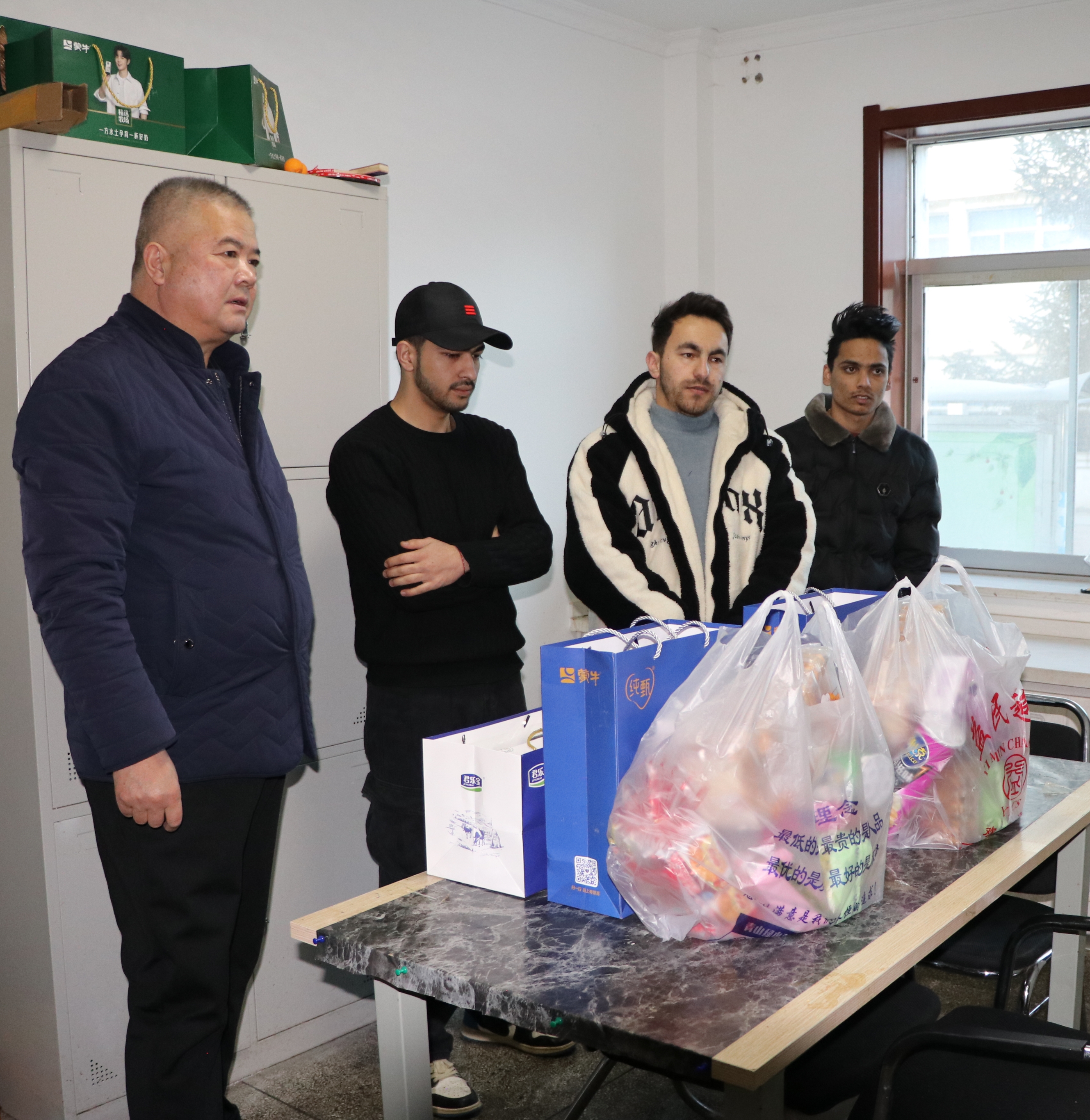 為深入了解來華留學(xué)生的學(xué)習(xí)和生活狀況,全面做好留學(xué)生的假期安全教育和服務(wù)保障工作,12月30日下午,在2025年新年來臨之際,黨委委員、副校長(zhǎng)王守云、學(xué)生工作部部長(zhǎng)張世亮、副部長(zhǎng)王鵬、保衛(wèi)處副處長(zhǎng)康興奎以及國(guó)際合作交流處全體工作人員走進(jìn)留學(xué)生公寓,給留學(xué)生們送去學(xué)校的關(guān)懷和新年的祝福。