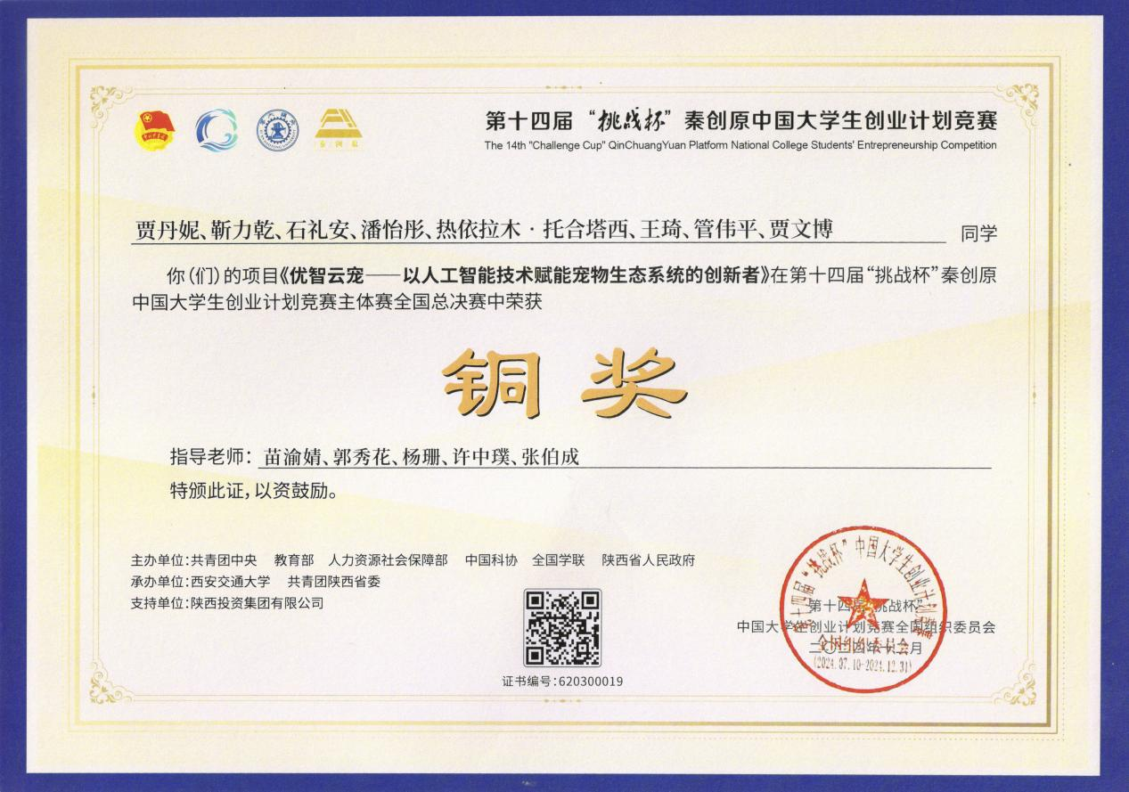 近日,由共青團(tuán)中央、教育部、人力資源和社會保障部、中國科協(xié)、全國學(xué)聯(lián)、陜西省人民政府聯(lián)合主辦的第十四屆“挑戰(zhàn)杯”秦創(chuàng)原中國大學(xué)生創(chuàng)業(yè)計(jì)劃競賽獲獎名單公布。我校經(jīng)濟(jì)管理學(xué)院推送的項(xiàng)目《優(yōu)智云寵——以人工智能技術(shù)賦能寵物生態(tài)系統(tǒng)的創(chuàng)新者》首次在主體賽全國總決賽中獲獎,實(shí)現(xiàn)了學(xué)校這項(xiàng)賽事的歷史性突破。