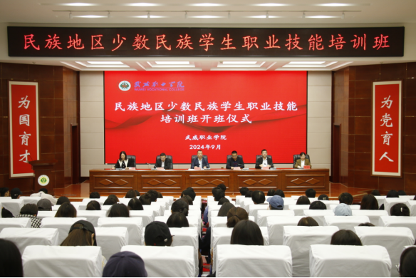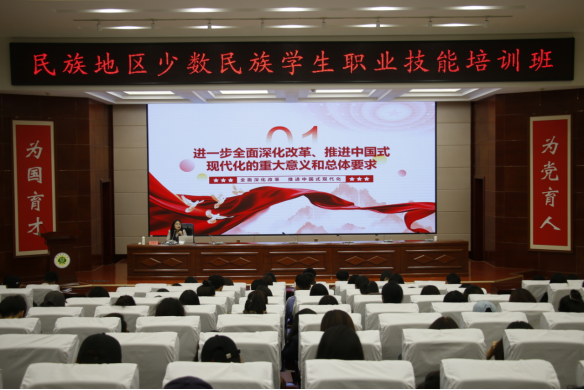 為推動落實國家穩(wěn)崗就業(yè)政策部署,進一步提升我校高校畢業(yè)生的綜合就業(yè)能力,2024年全省“三項計劃”試點示范項目“民族地區(qū)少數(shù)民族學生職業(yè)技能培訓”在我校菁英廳正式開班。