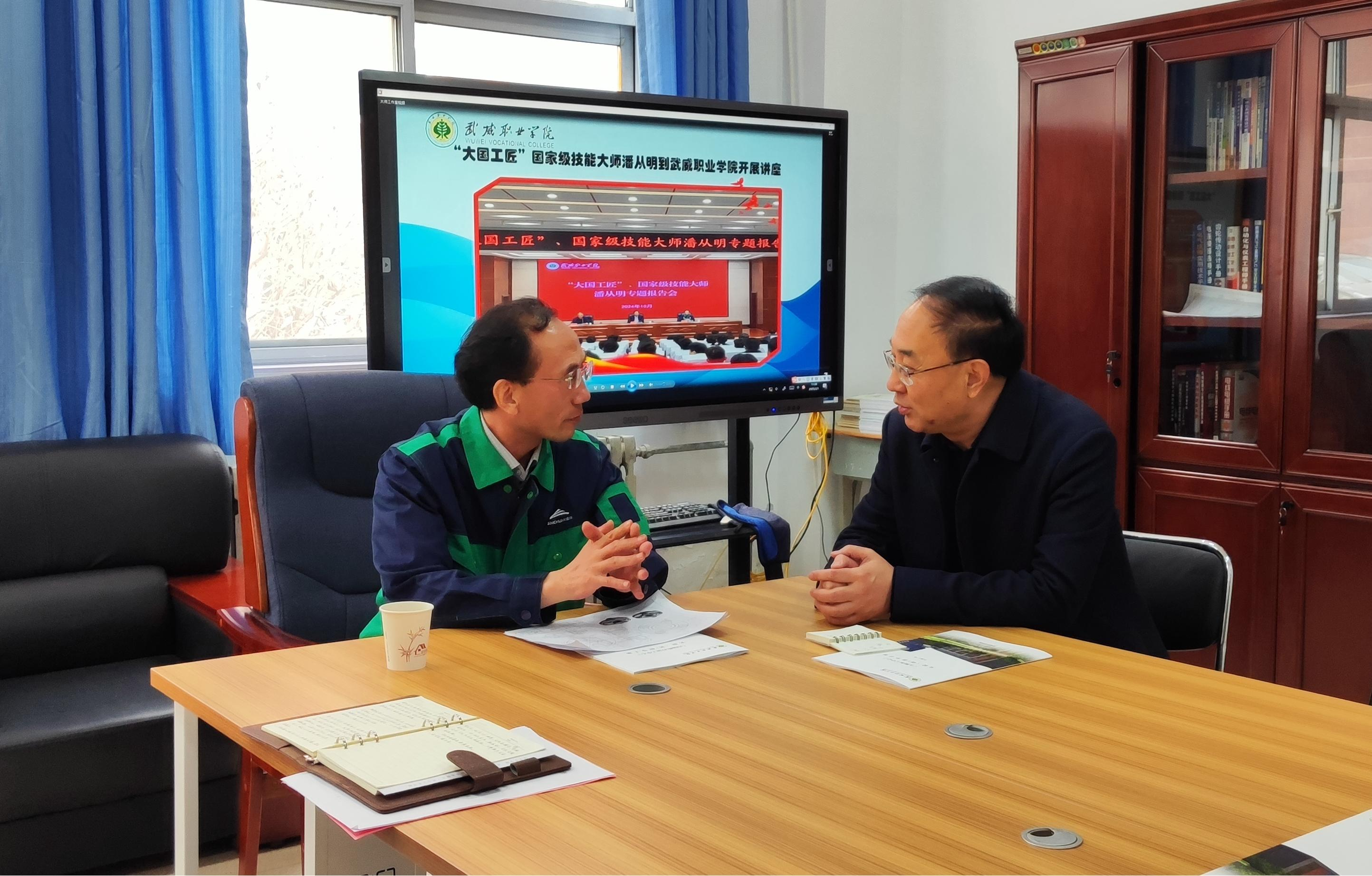 講座后,潘從明來到學(xué)校智能制造實(shí)訓(xùn)中心進(jìn)行現(xiàn)場指導(dǎo),認(rèn)真聽取了實(shí)訓(xùn)中心的實(shí)訓(xùn)場地、實(shí)訓(xùn)裝備、實(shí)訓(xùn)方式等情況,并與校領(lǐng)導(dǎo)及師生代表進(jìn)行了深入交流。他勉勵(lì)師生傳承工匠精神,積極投身實(shí)踐,提高動手能力,在實(shí)踐中快速成長為高素質(zhì)技術(shù)技能型人才。