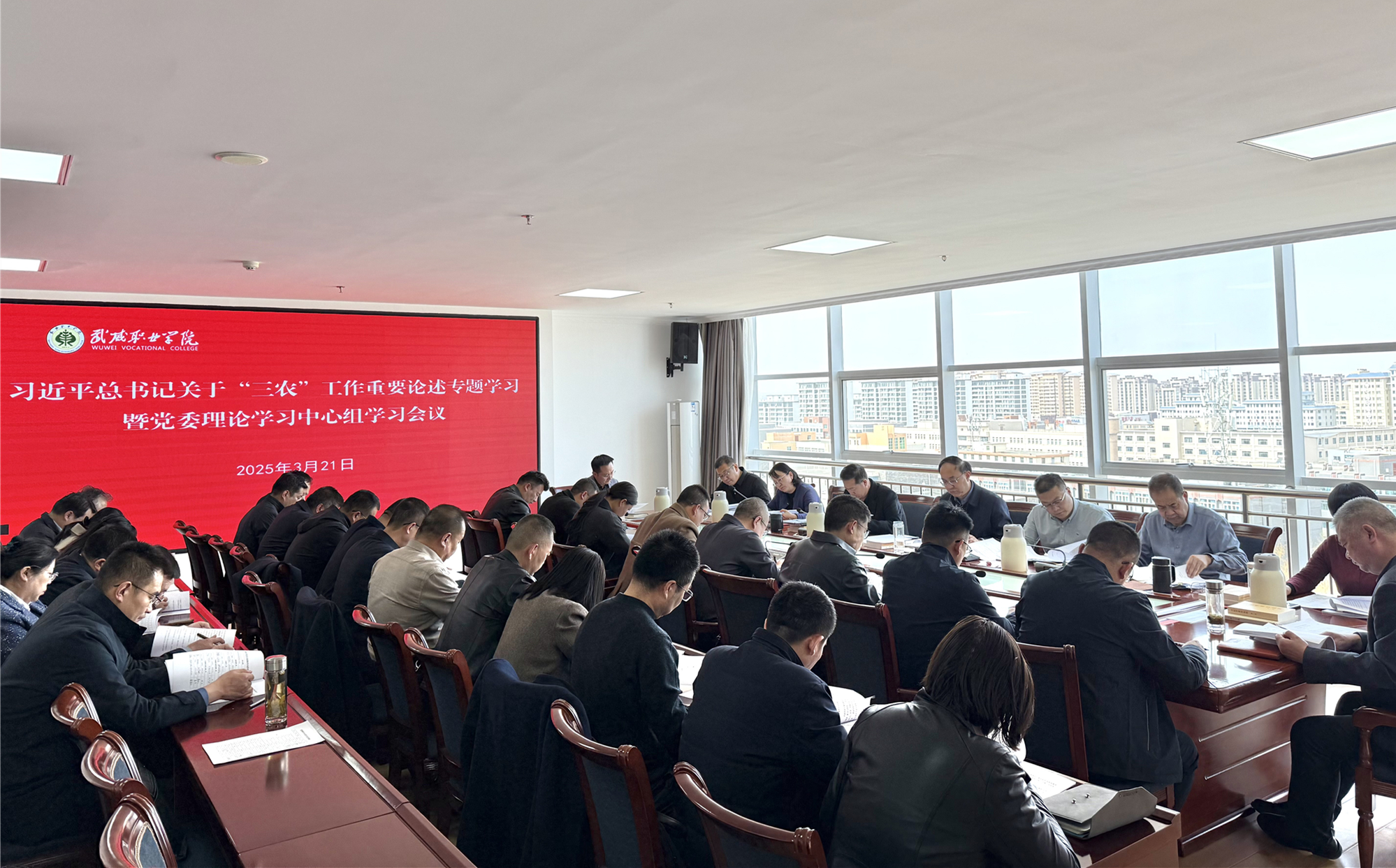 3月21日,學(xué)校召開黨委理論學(xué)習(xí)中心組學(xué)習(xí)會議,專題學(xué)習(xí)研討習(xí)近平總書記關(guān)于“三農(nóng)”工作重要論述。校黨委理論學(xué)習(xí)中心組成員參加,校長李海軍,各部門、二級學(xué)院主要負(fù)責(zé)人列席。黨委書記王宏主持會議并講話。