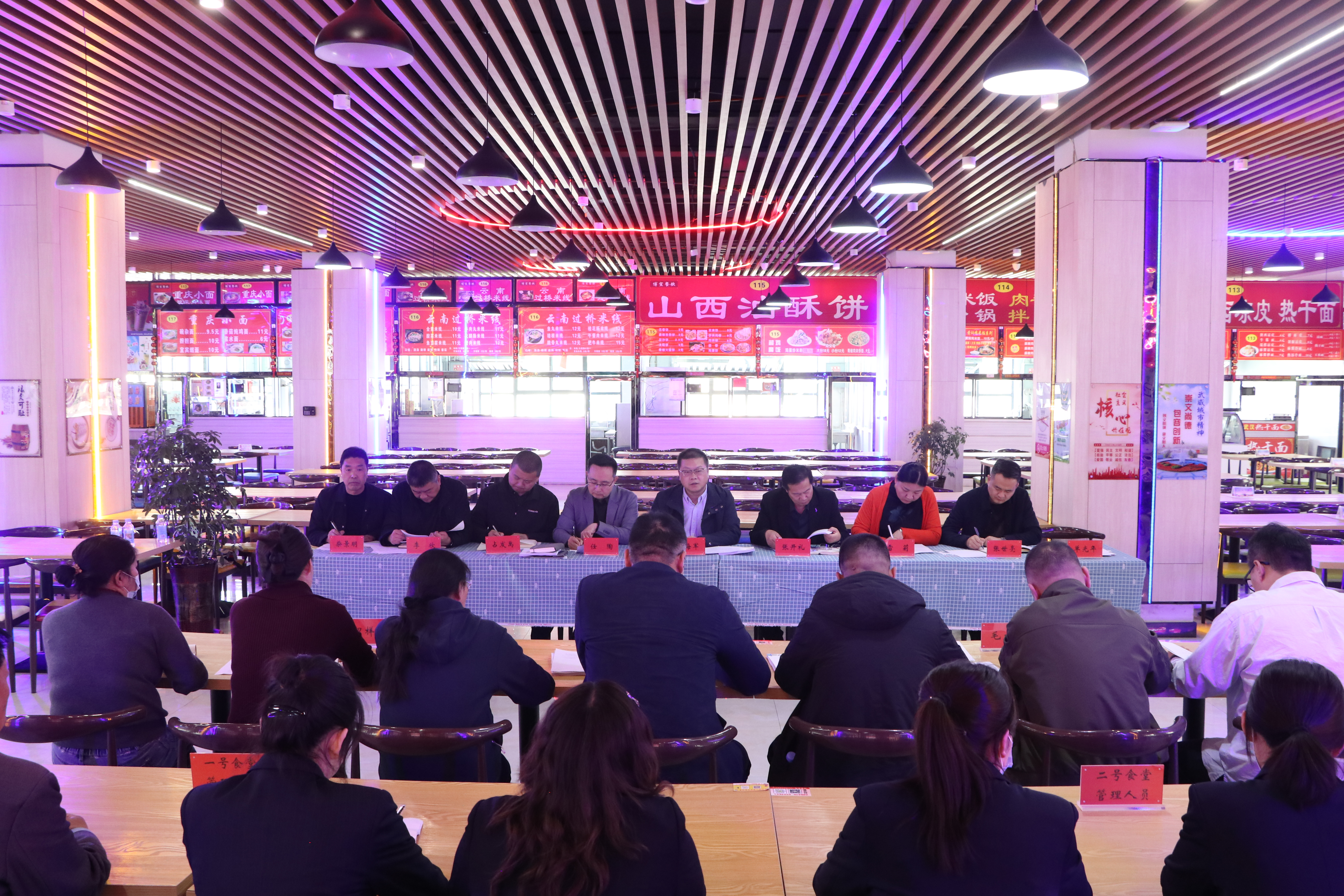 李海軍作總結(jié)講話,他代表學(xué)校對每一位默默奉獻、辛勤付出的餐飲公司管理者、服務(wù)者表示誠摯的感謝。李海軍指出,本次會議的核心目標是堅持以習(xí)近平新時代中國特色社會主義思想為指導(dǎo),堅決貫徹落實食品安全“四個最嚴”要求,堅持目標導(dǎo)向和問題導(dǎo)向,采取有力有效措施,消除校園食品安全風(fēng)險隱患,建立健全制度機制,提升餐飲服務(wù)質(zhì)量和水平,切實保障食品安全。一是要提高思想認識,樹牢食品安全底線思維;二是要嚴把采購關(guān)口,加強食堂日常監(jiān)管;三是要強化員工教育培訓(xùn),有力提升服務(wù)水平;四是要加大病媒生物防制,打造安全衛(wèi)生就餐環(huán)境;五是要加強飯菜質(zhì)量價格監(jiān)管,保障師生切身權(quán)益;六是要加強食品安全問題排查,嚴格落實整改工作。