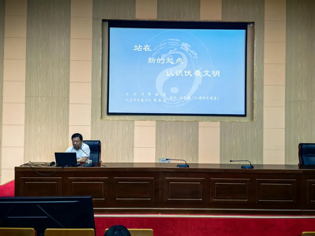 講座中,劉玉璞以習(xí)近平總書(shū)記考察天水伏羲廟的重要講話為切入點(diǎn),圍繞“中華文明起源”“鑄牢中華民族共同體意識(shí)”“實(shí)現(xiàn)中華民族偉大復(fù)興”三大維度展開(kāi),系統(tǒng)梳理了伏羲文化研究的最新成果,指出伏羲文明是中華文明的重要源頭,其文化符號(hào)深刻體現(xiàn)了中華民族早期先民的宇宙觀與價(jià)值觀。通過(guò)考古發(fā)現(xiàn)與文獻(xiàn)互證,他闡釋了伏羲文化在推動(dòng)多民族融合、促進(jìn)文化認(rèn)同中的歷史作用,并強(qiáng)調(diào)伏羲文化在當(dāng)代的價(jià)值不僅在于學(xué)術(shù)研究,更需轉(zhuǎn)化為增強(qiáng)民族文化自信、服務(wù)社會(huì)發(fā)展的精神動(dòng)力。這場(chǎng)講座以生動(dòng)的語(yǔ)言和詳實(shí)的例證,為聽(tīng)眾勾勒出一部從史前文明到當(dāng)代傳承的伏羲文化發(fā)展史,現(xiàn)場(chǎng)反響熱烈。