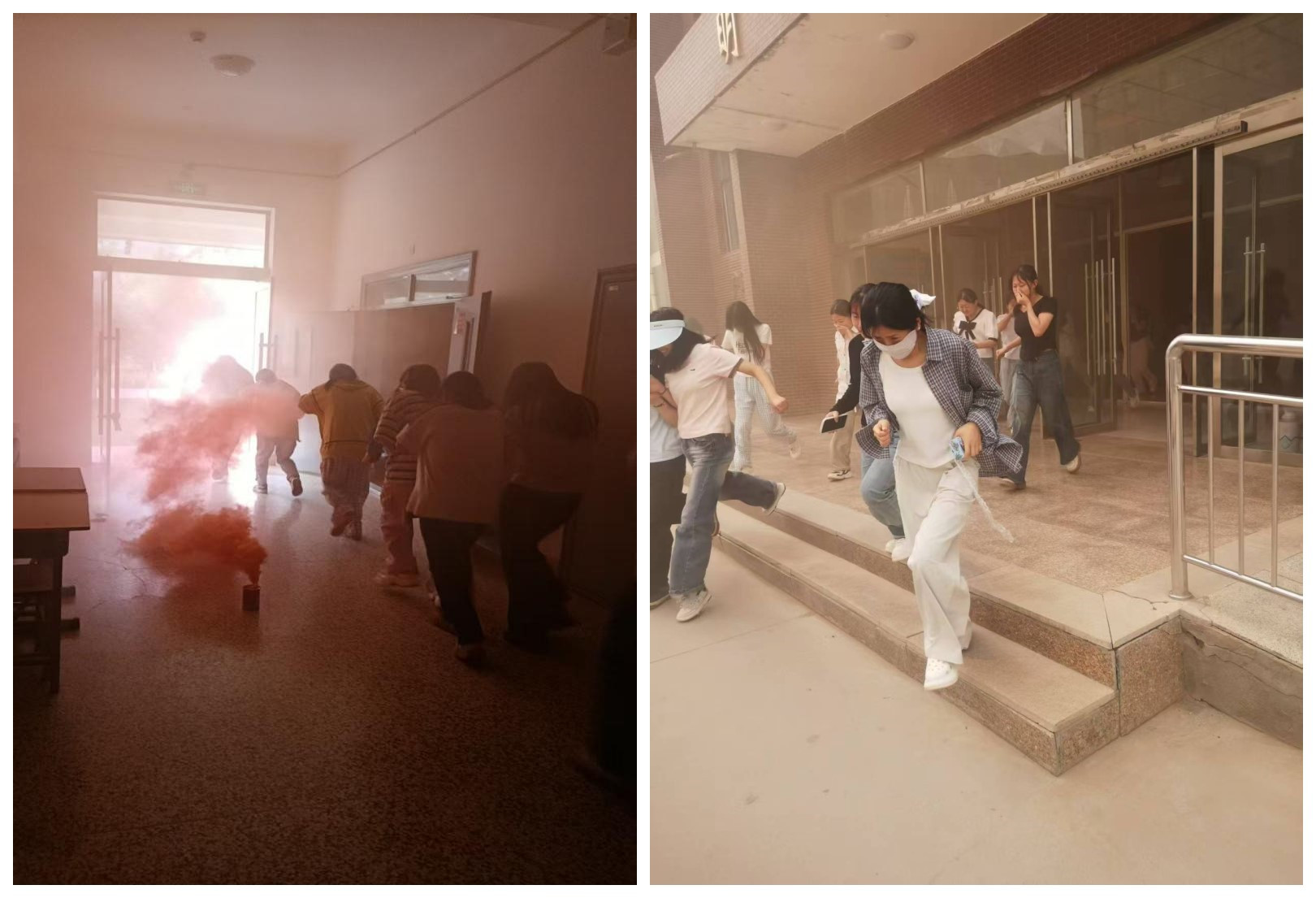 下午4點(diǎn)30分,隨著警報(bào)響起,演練正式拉開(kāi)帷幕。安保人員迅速點(diǎn)燃預(yù)先放置在各樓宇內(nèi)的煙霧彈,一瞬間樓宇內(nèi)濃煙彌漫,同學(xué)們迅速捂住口鼻、彎腰低姿從消防疏散通道,有序地向安全區(qū)域疏散撤離。演練過(guò)程中,同學(xué)們沉著冷靜,動(dòng)作迅速規(guī)范,僅用短短幾分鐘時(shí)間便全部安全疏散到校園廣場(chǎng)等開(kāi)闊地帶。