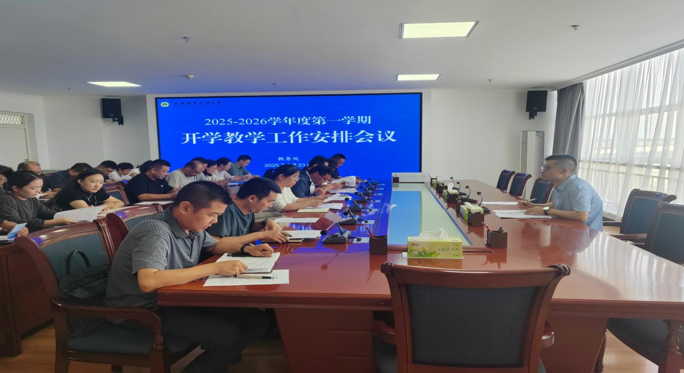 為統(tǒng)籌推進(jìn)新學(xué)期教學(xué)工作有序開(kāi)展,確保各項(xiàng)教學(xué)任務(wù)落地見(jiàn)效,8月23日下午,武威職業(yè)技術(shù)大學(xué)在能源科技樓811會(huì)議室召開(kāi)2025-2026學(xué)年度第一學(xué)期開(kāi)學(xué)教學(xué)工作安排會(huì)議。各學(xué)院(部)負(fù)責(zé)人、教學(xué)秘書(shū)、教務(wù)處全體人員參加。
