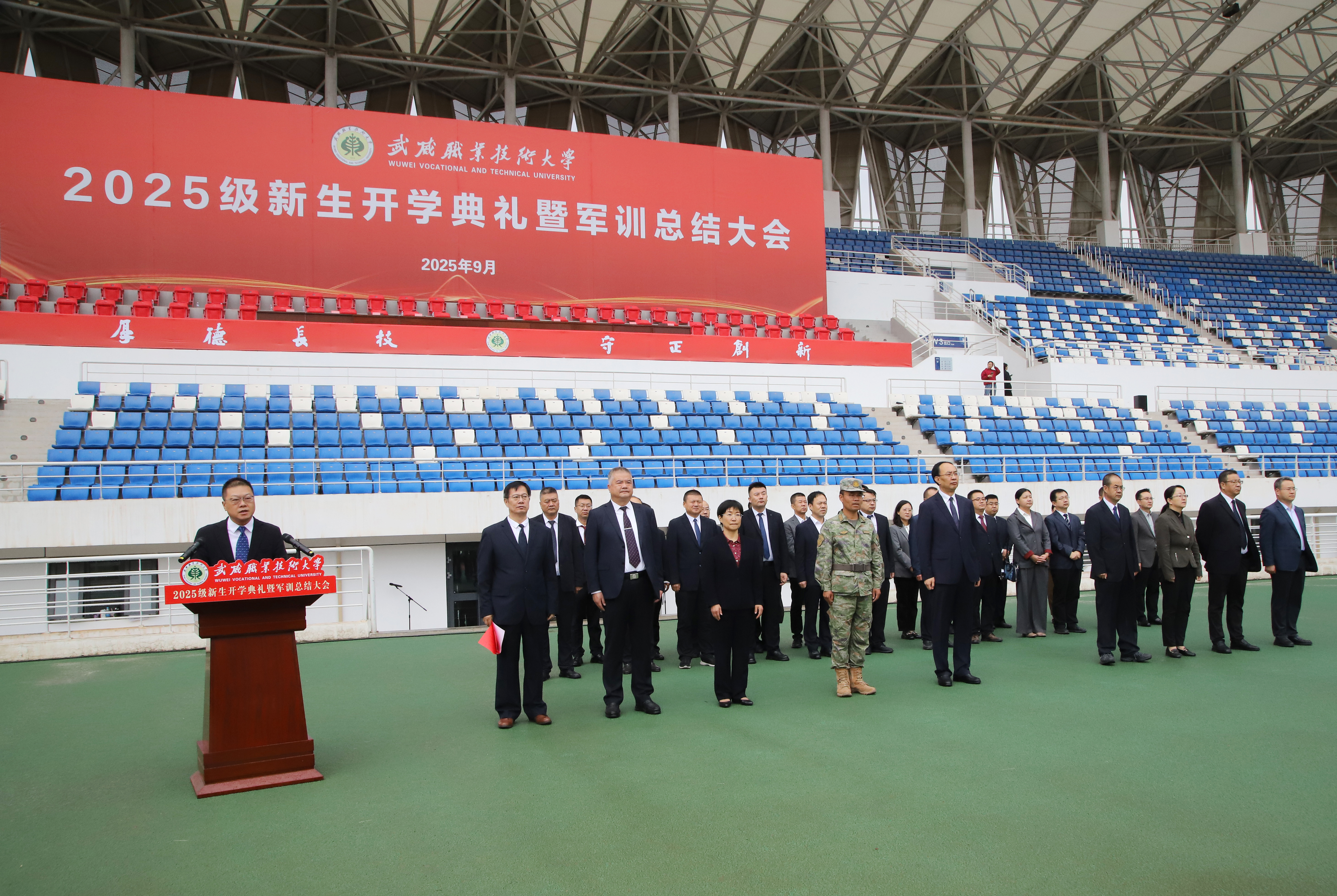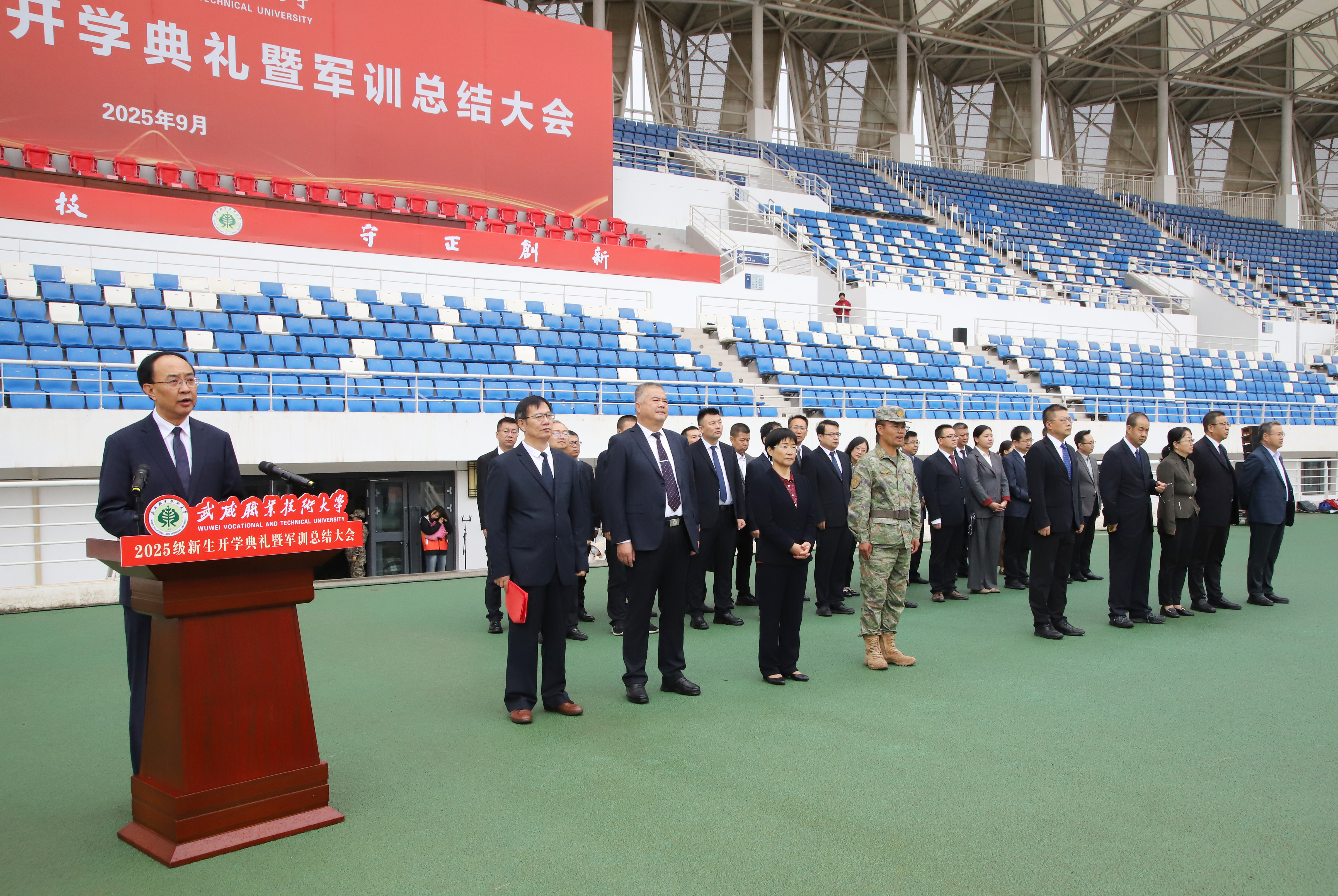 武威職業(yè)技術大學隆重舉行2025級新生開學典禮暨軍訓總結大會