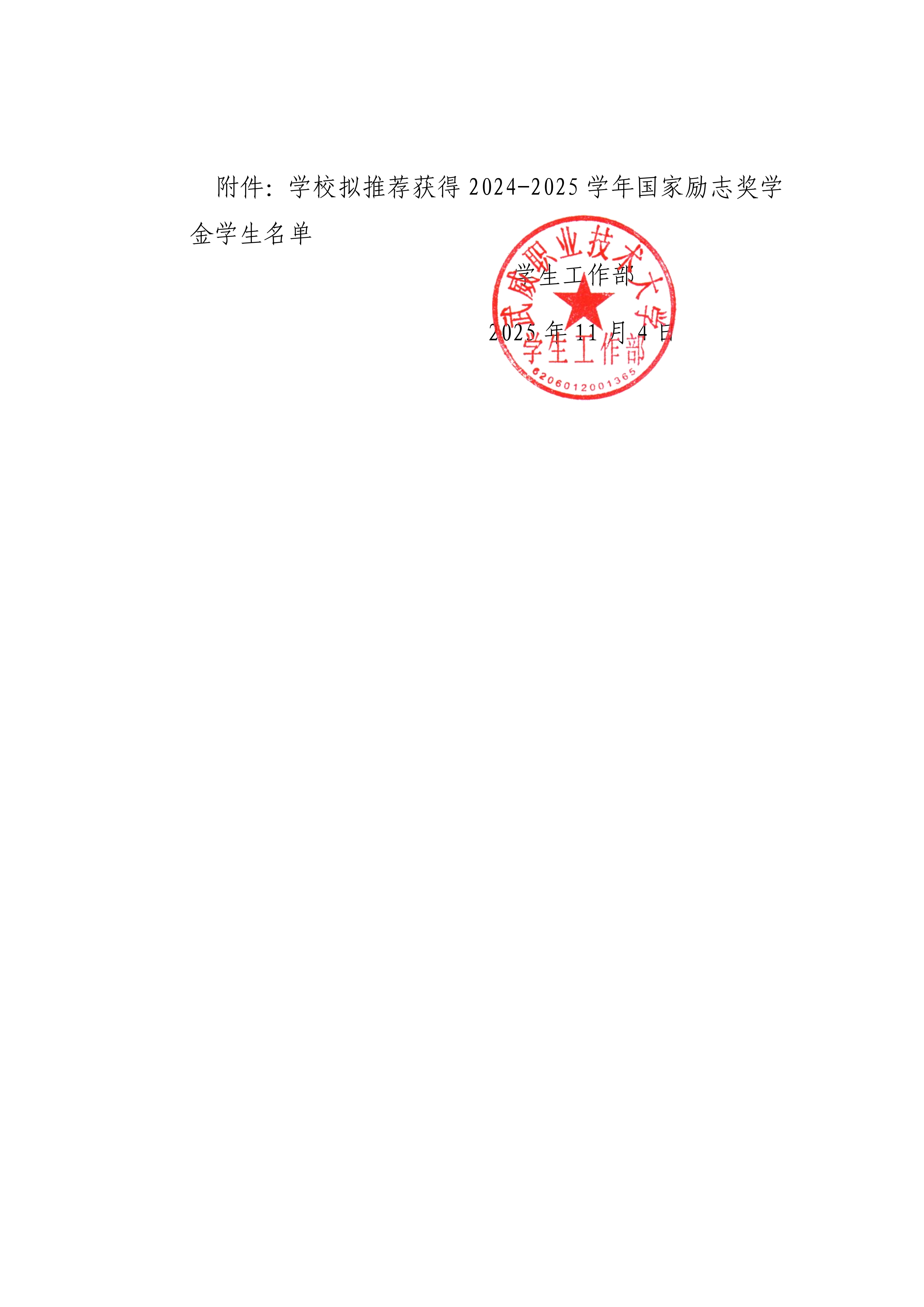 學(xué)校關(guān)于推薦獲得2024-2025學(xué)年國(guó)家勵(lì)志獎(jiǎng)學(xué)金學(xué)生名單的公示