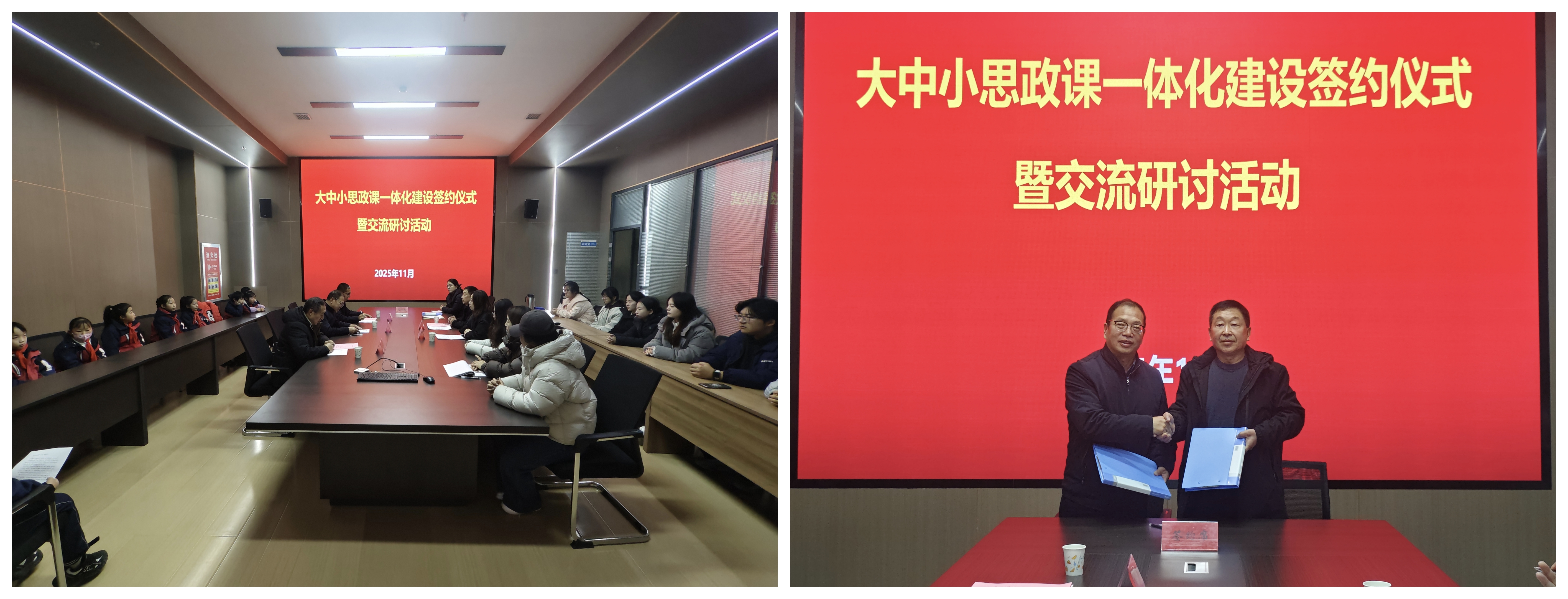 簽約儀式上,劉心和徐主年分別致辭,雙方共同簽署了《大中小學(xué)思政課一體化共建協(xié)議書》,并圍繞共建目標(biāo)、合作內(nèi)容與實施機(jī)制進(jìn)行了深入交流。此次合作簽約為院校雙方搭建了資源共享、優(yōu)勢互補(bǔ)、協(xié)同育人的平臺,希望雙方在師資隊伍共建、實踐資源共享、課程創(chuàng)新突破等方面多維度協(xié)同推進(jìn),不斷探索一體化建設(shè)的長效機(jī)制,打破各學(xué)段在課程、資源、師資等方面的壁壘,實現(xiàn)有機(jī)銜接,促進(jìn)優(yōu)質(zhì)教學(xué)經(jīng)驗互鑒、特色教學(xué)模式推廣,共同提升立德樹人效果。