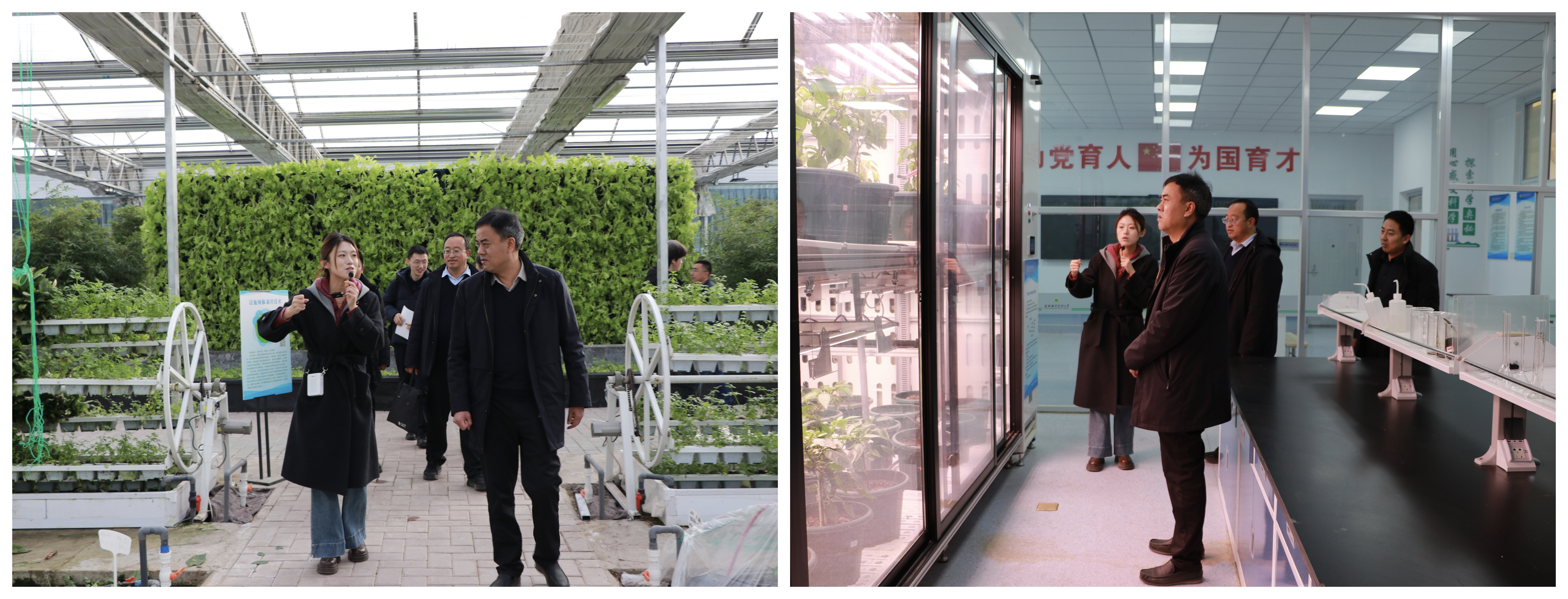 調(diào)研期間,莊浪職業(yè)教育中心一行四人先后參觀了農(nóng)產(chǎn)品質(zhì)量安全與檢測實訓(xùn)室、智慧設(shè)施農(nóng)業(yè)實訓(xùn)室、現(xiàn)代農(nóng)業(yè)生產(chǎn)性實訓(xùn)基地等多個實驗實訓(xùn)場所。學(xué)院專業(yè)教師詳細介紹了各實訓(xùn)室的建設(shè)標準、設(shè)備配置、教學(xué)功能及實訓(xùn)課程開展情況,展示了學(xué)院在教育教學(xué)方面取得的成果。在現(xiàn)代農(nóng)業(yè)生產(chǎn)性實訓(xùn)基地,雙方圍繞中高職貫通培養(yǎng)、實驗實訓(xùn)室建設(shè)等內(nèi)容深入交流,申賓德介紹了學(xué)院專業(yè)特色、課程體系、師資隊伍及學(xué)生升學(xué)就業(yè)等方面的內(nèi)容。王瑾楠結(jié)合本校專業(yè)辦學(xué)實際,交流了在貫通培養(yǎng)過程中遇到的課程銜接、人才培養(yǎng)標準等問題。