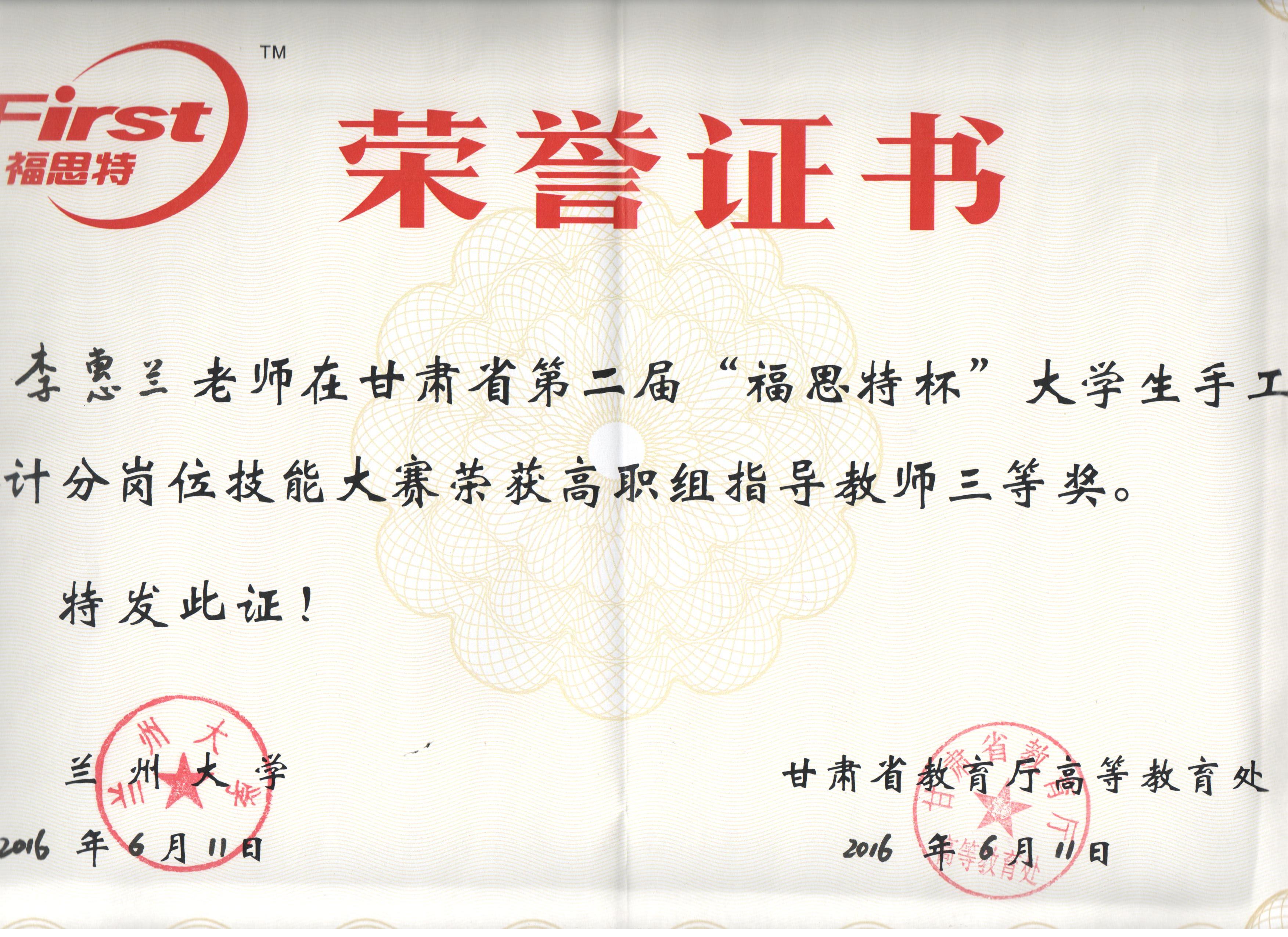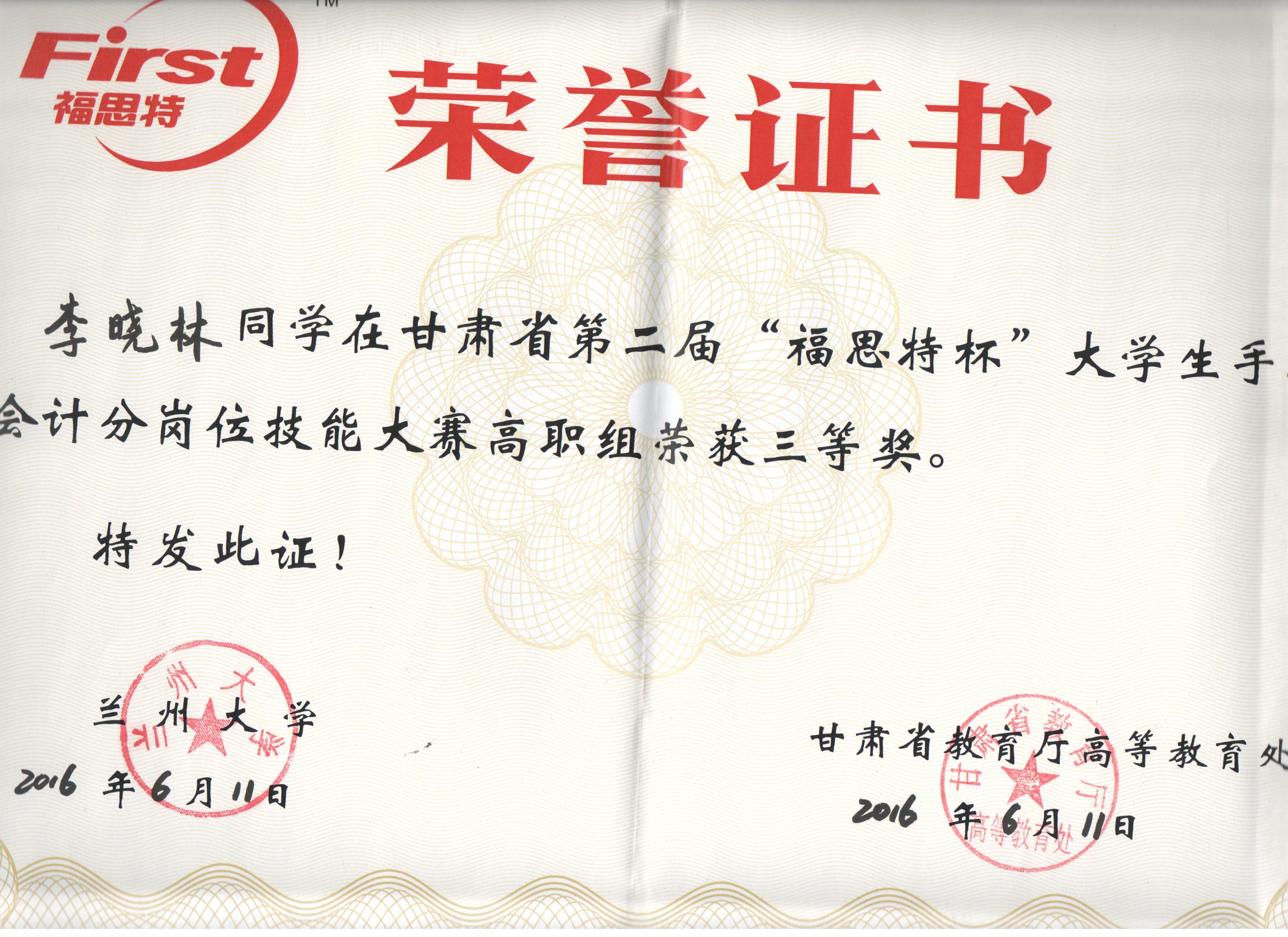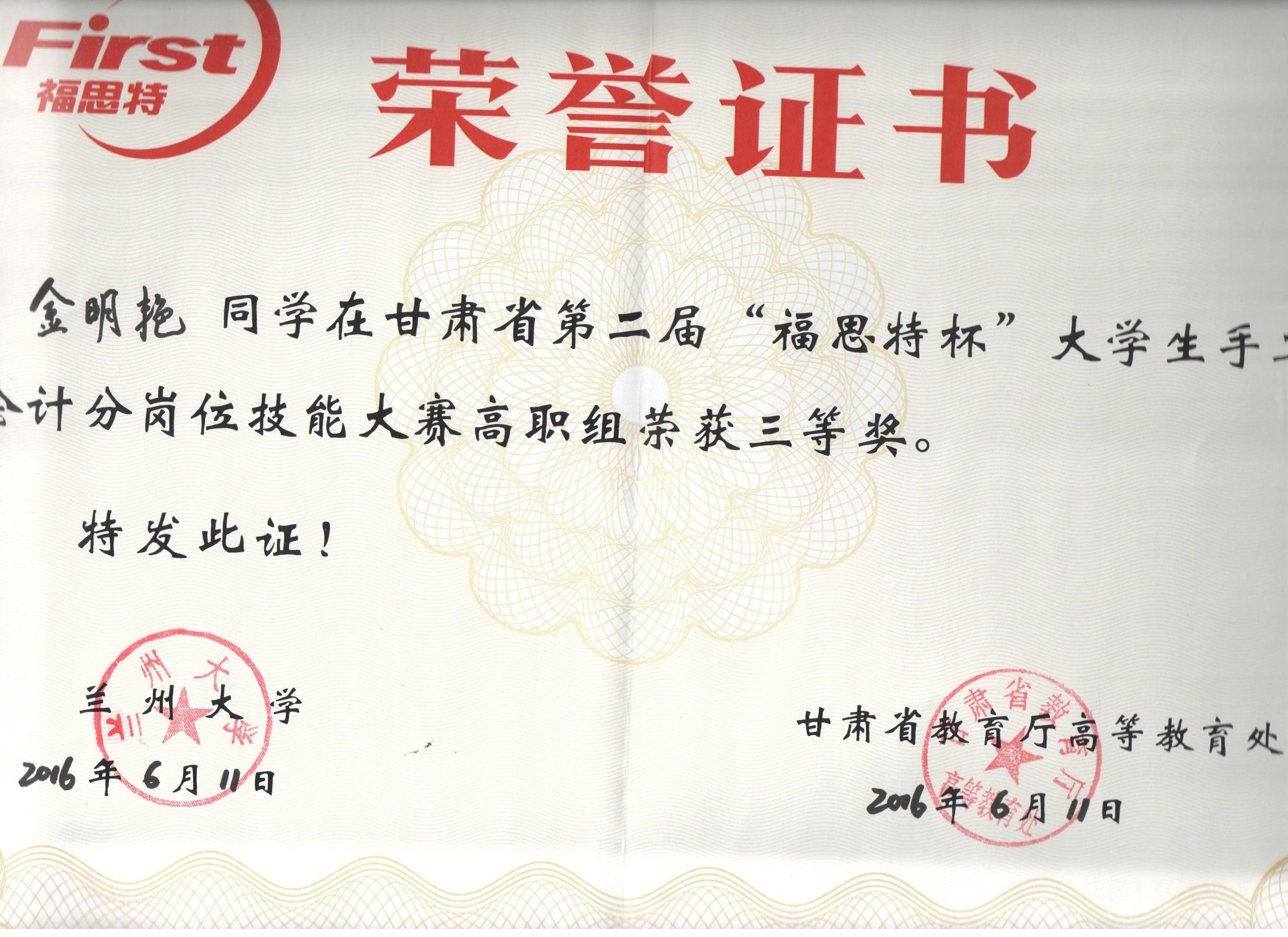 經(jīng)濟管理系李惠蘭老師指導(dǎo)我系會計專業(yè)學(xué)生參加甘肅省第二屆“福思特”大學(xué)生手工會計分崗位技能競賽,榮獲高職組三等獎。