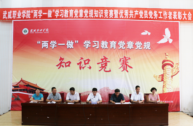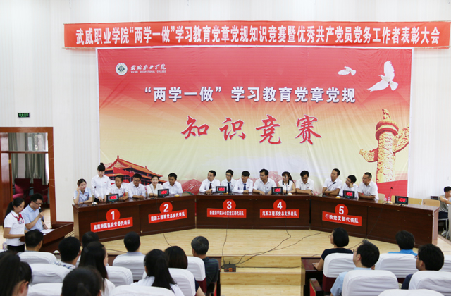 7月6日下午,武威職業(yè)學(xué)院“兩學(xué)一做”學(xué)習(xí)教育黨章黨規(guī)知識(shí)競(jìng)賽暨優(yōu)秀共產(chǎn)黨員、優(yōu)秀黨務(wù)工作者表彰大會(huì)在尚德樓正德廳召開。黨委書記張國民,黨委副書記趙明,紀(jì)委書記張富國,副院長(zhǎng)翟存祥、王永緒、潘玉華、田迎春出席會(huì)議。直屬附屬醫(yī)院黨委主要負(fù)責(zé)同志、各黨總支(直屬黨支部)書記,各部門負(fù)責(zé)人,受表彰的優(yōu)秀共產(chǎn)黨員、優(yōu)秀黨務(wù)工作者以及參加競(jìng)賽的代表隊(duì)成員共270人參加了知識(shí)競(jìng)賽活動(dòng)和表彰大會(huì)。表彰大會(huì)由黨委副書記趙明主持。