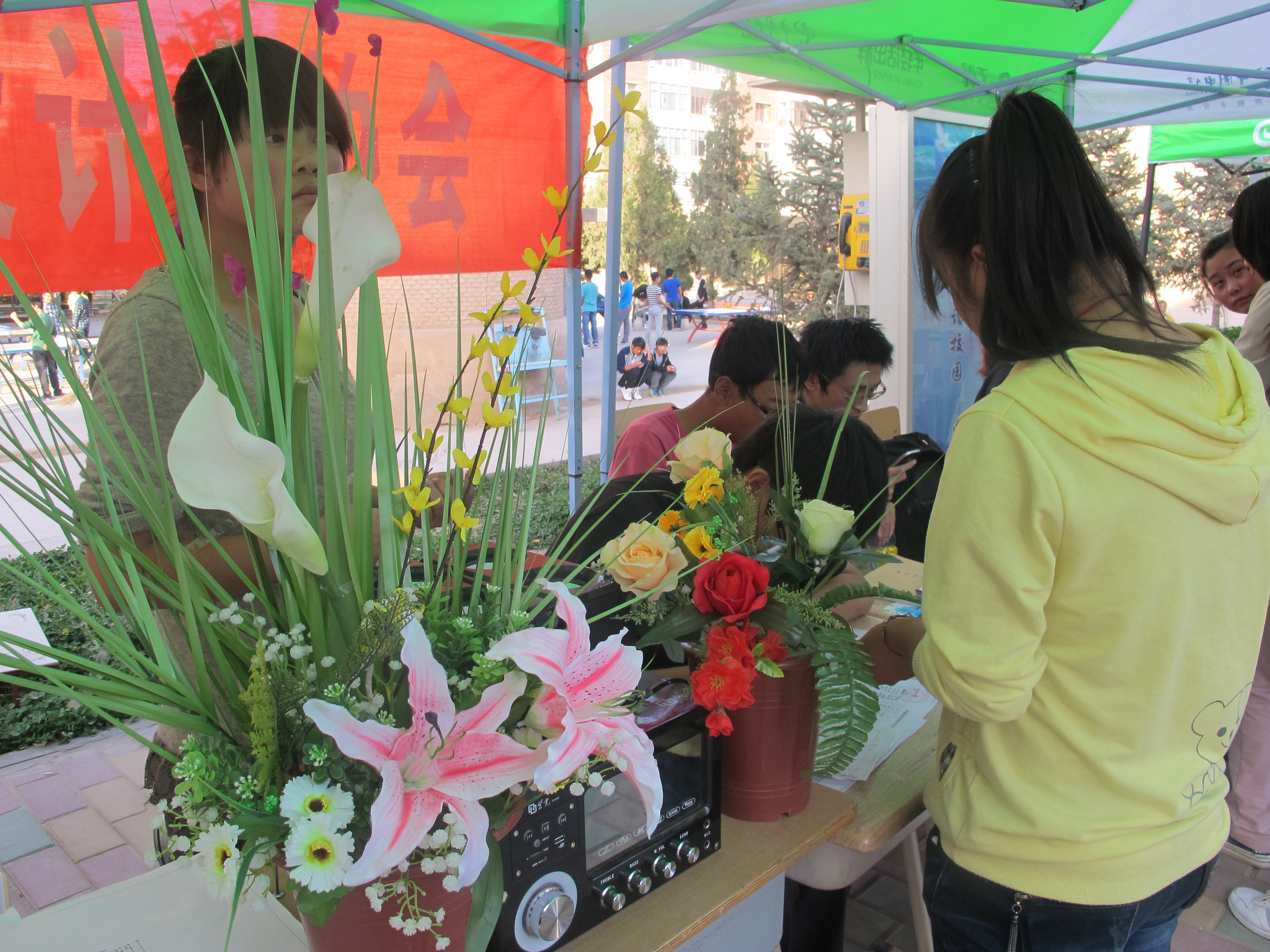 現(xiàn)代農業(yè)技術系花語插花社向新生展示插花藝術