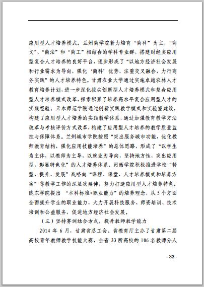 甘肅省普通高等學(xué)校2014年本科教學(xué)質(zhì)量報告