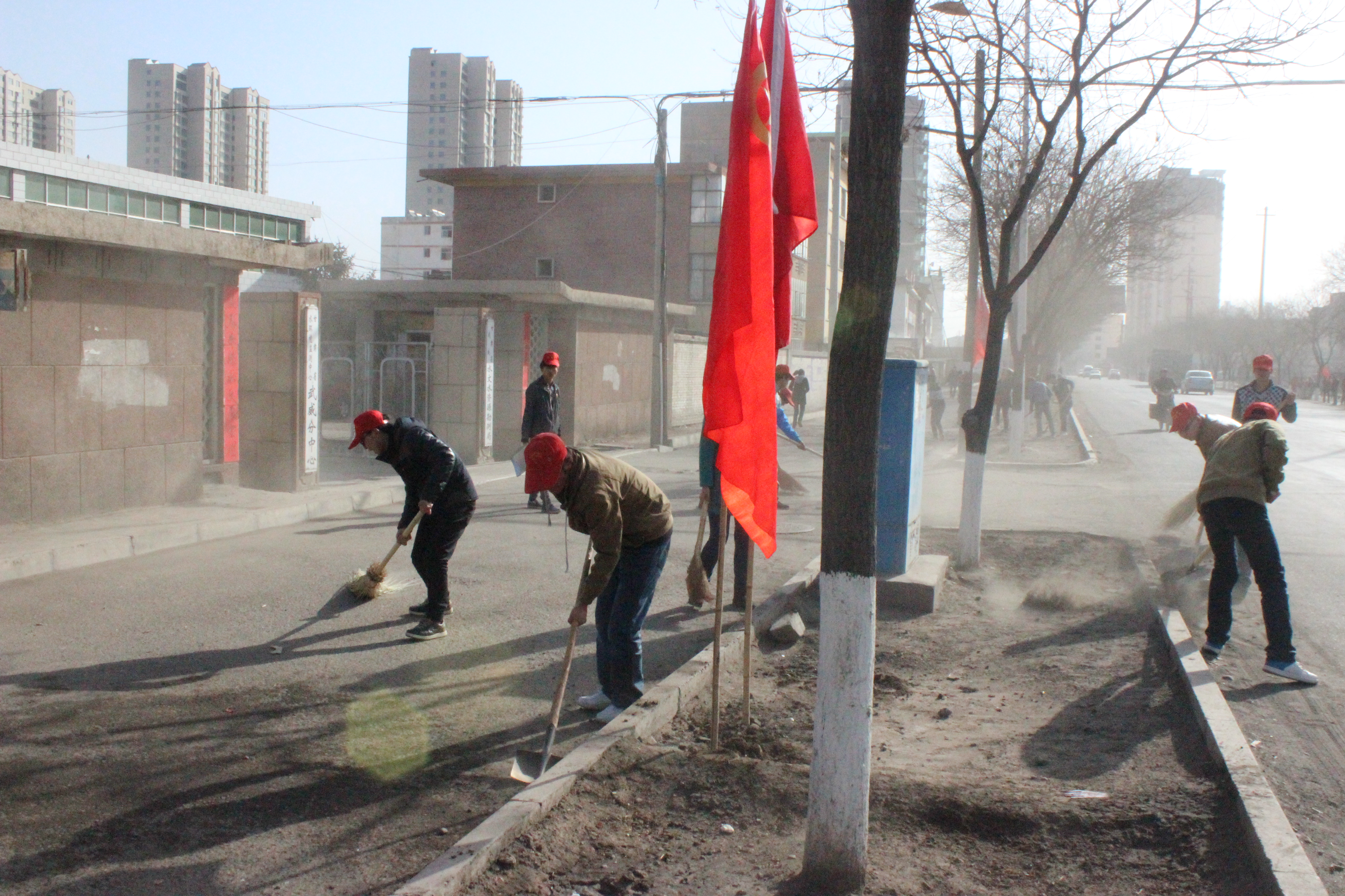 上午10點(diǎn),同學(xué)們?cè)谝惶?hào)教學(xué)樓前廣場(chǎng)集合,唐宗舜老師進(jìn)行了動(dòng)員安排。大家合理分工,積極配合,不怕臟不怕累,通過(guò)兩個(gè)小時(shí)的勞動(dòng)對(duì)校門口至水文勘測(cè)站路段北側(cè)的塵土和垃圾進(jìn)行了清理,同學(xué)們默默地奉獻(xiàn)自己的力量,也成了馬路上一道亮麗的風(fēng)景。