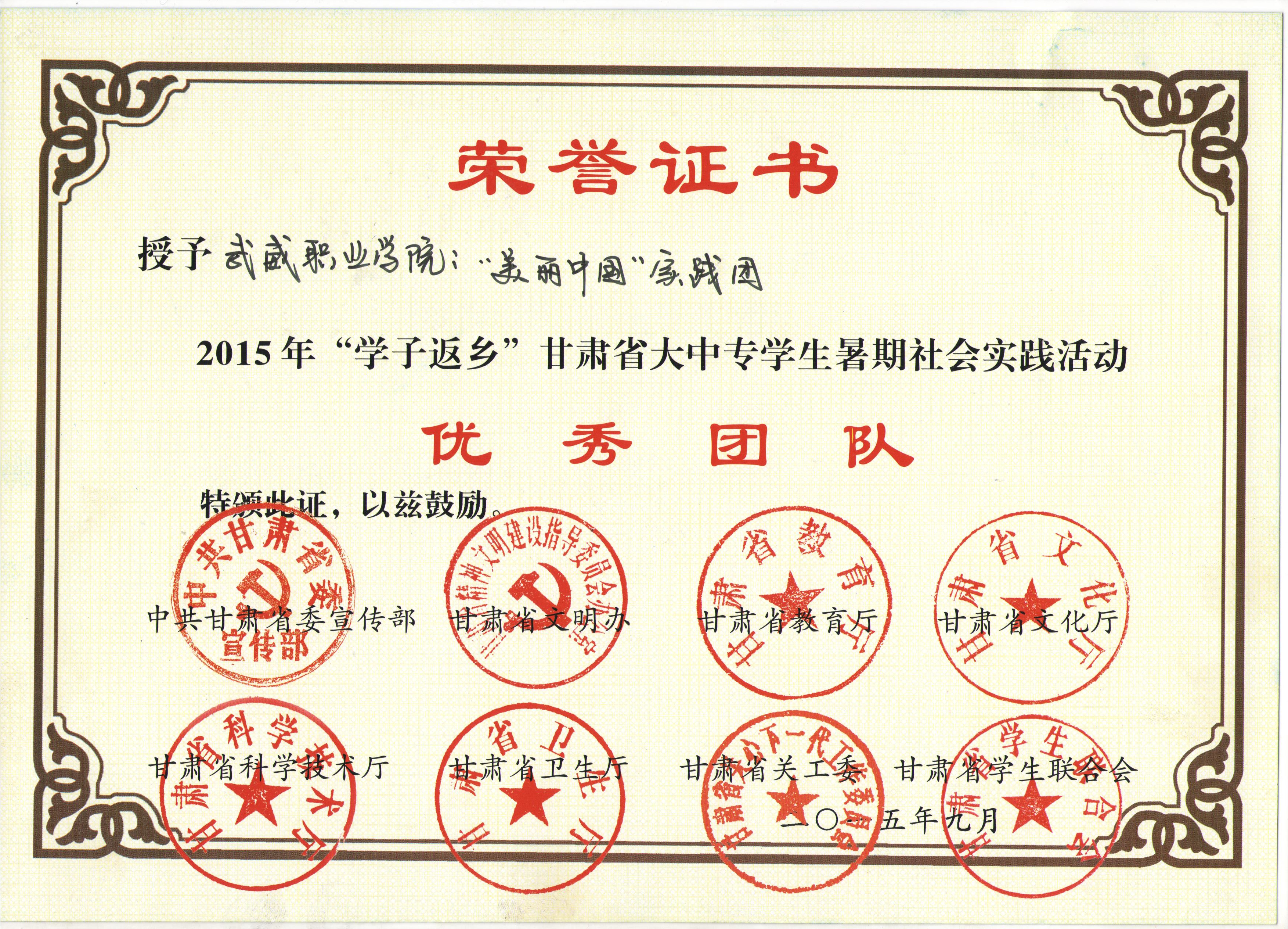 甘肅省大學(xué)生暑期文化科技衛(wèi)生“三下鄉(xiāng)”活動(dòng)優(yōu)秀團(tuán)隊(duì)