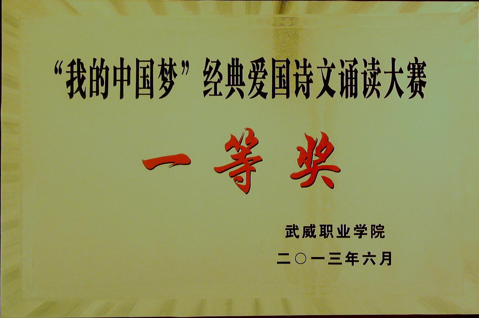 “我的中國夢”經(jīng)典愛國詩文誦讀大賽一等獎(jiǎng)