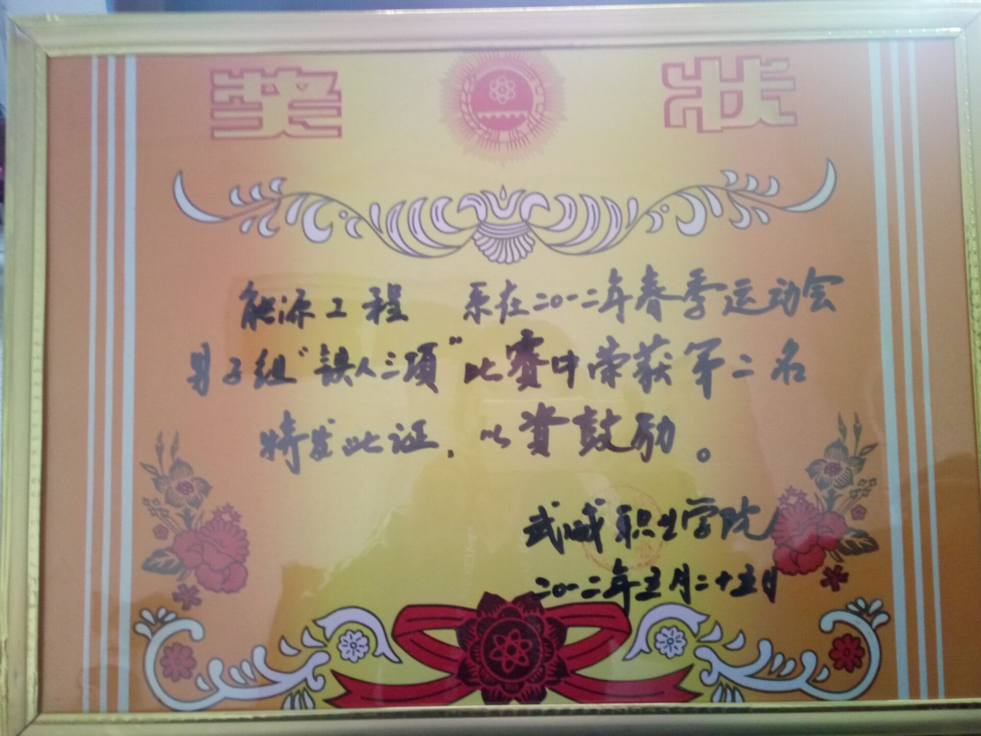 我系代表隊在2012年春季運動會“鐵人三項”榮獲第二名