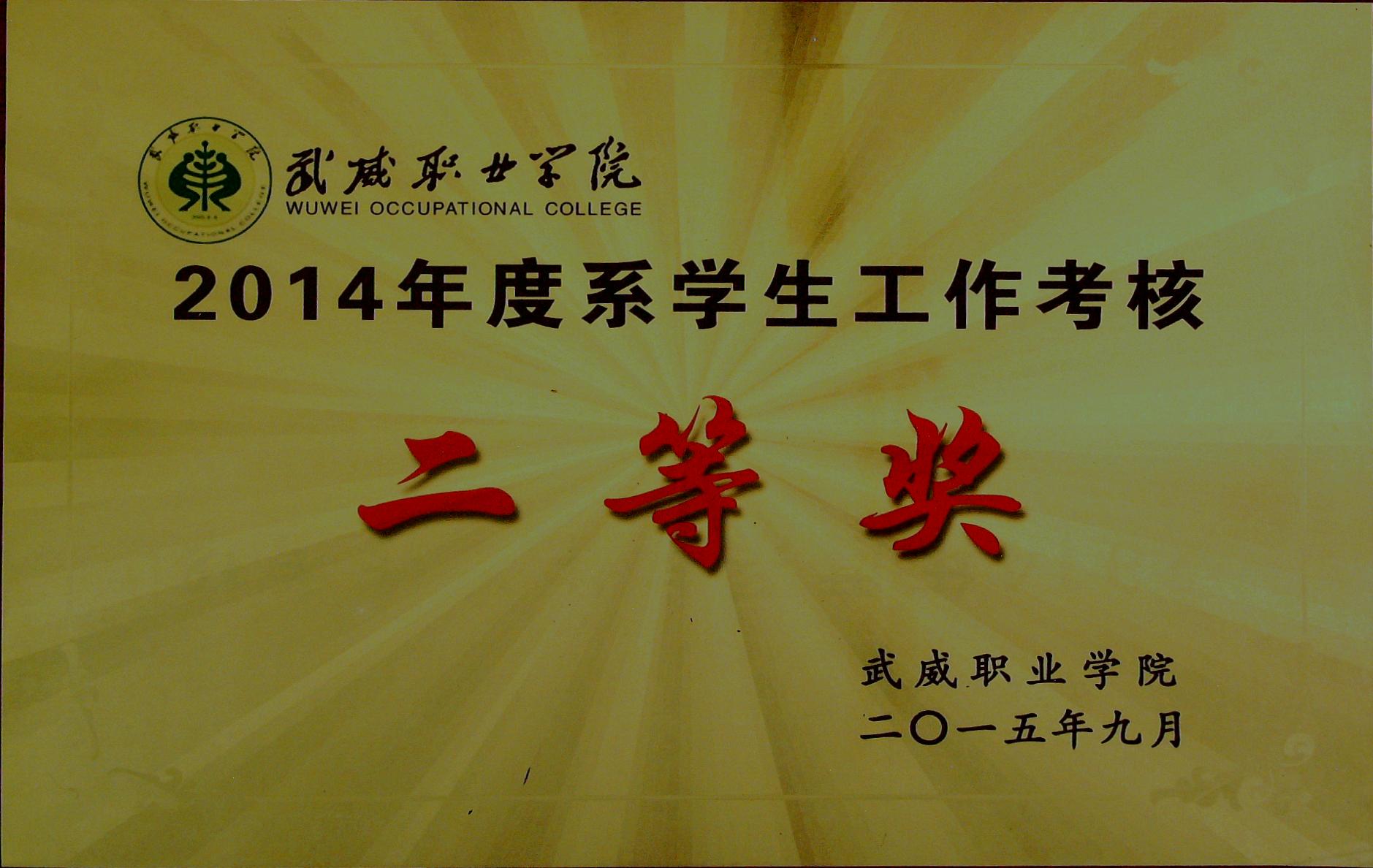 2014年度系學(xué)生工作考核二等獎(jiǎng)