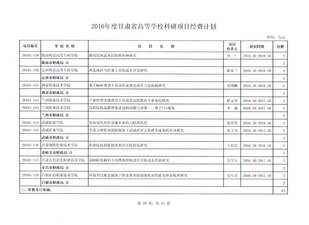 甘肅省教育廳關(guān)于下達(dá)2016年度甘肅省高等學(xué)??蒲许?xiàng)目自籌經(jīng)費(fèi)項(xiàng)目的通知