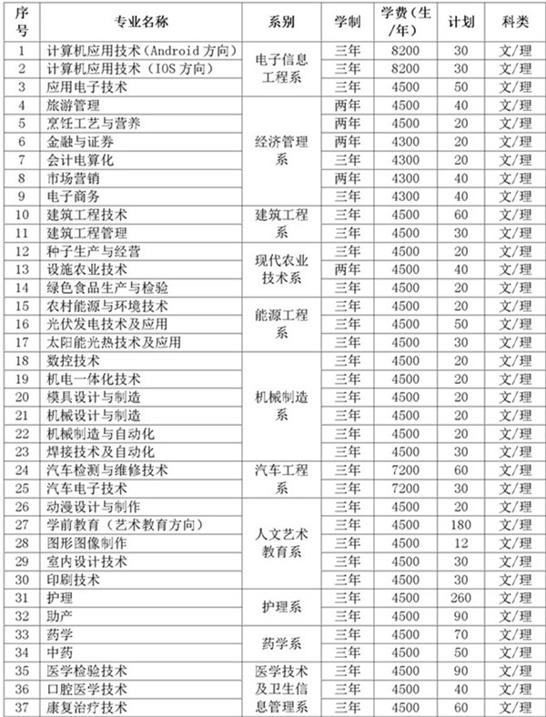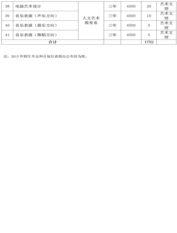 武威職業(yè)學(xué)院2015年招生計劃表