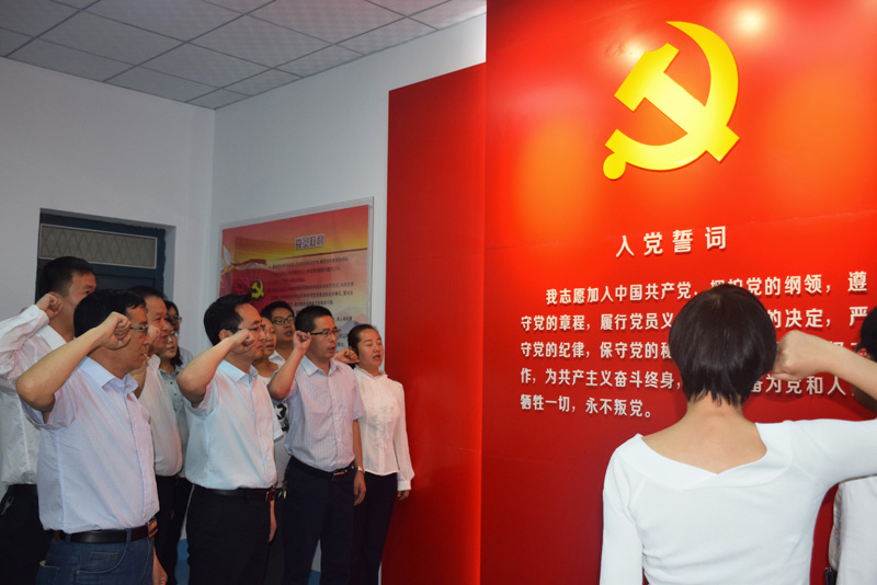 “我志愿加入中國共產(chǎn)黨,擁護黨的綱領(lǐng),遵守黨的章程……” 全體黨員同志在任陶的帶領(lǐng)下,鄭重地舉起右手,面對鮮紅的黨旗再次莊嚴宣誓。誓詞擲地有聲,鏗鏘有力,讓全院黨員同志得到了一次思想洗禮,一次精神激勵。任陶指出,重溫入黨誓詞,是“兩學一做”學習教育的重要內(nèi)容,是黨性的再熏陶、再教育,目的在于立起黨員的標桿來,喚起“入黨為什么”“在黨干什么”的重新思考。