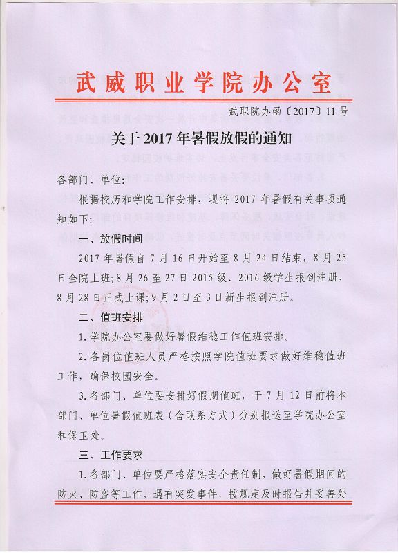 武威職業(yè)學(xué)院值班管理制度(試行)