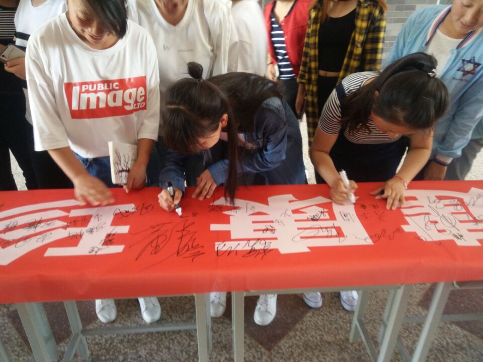 5月22日 ,系團學(xué)會制作橫幅標語“關(guān)注健康、珍愛生命”,召集簽名活動。
