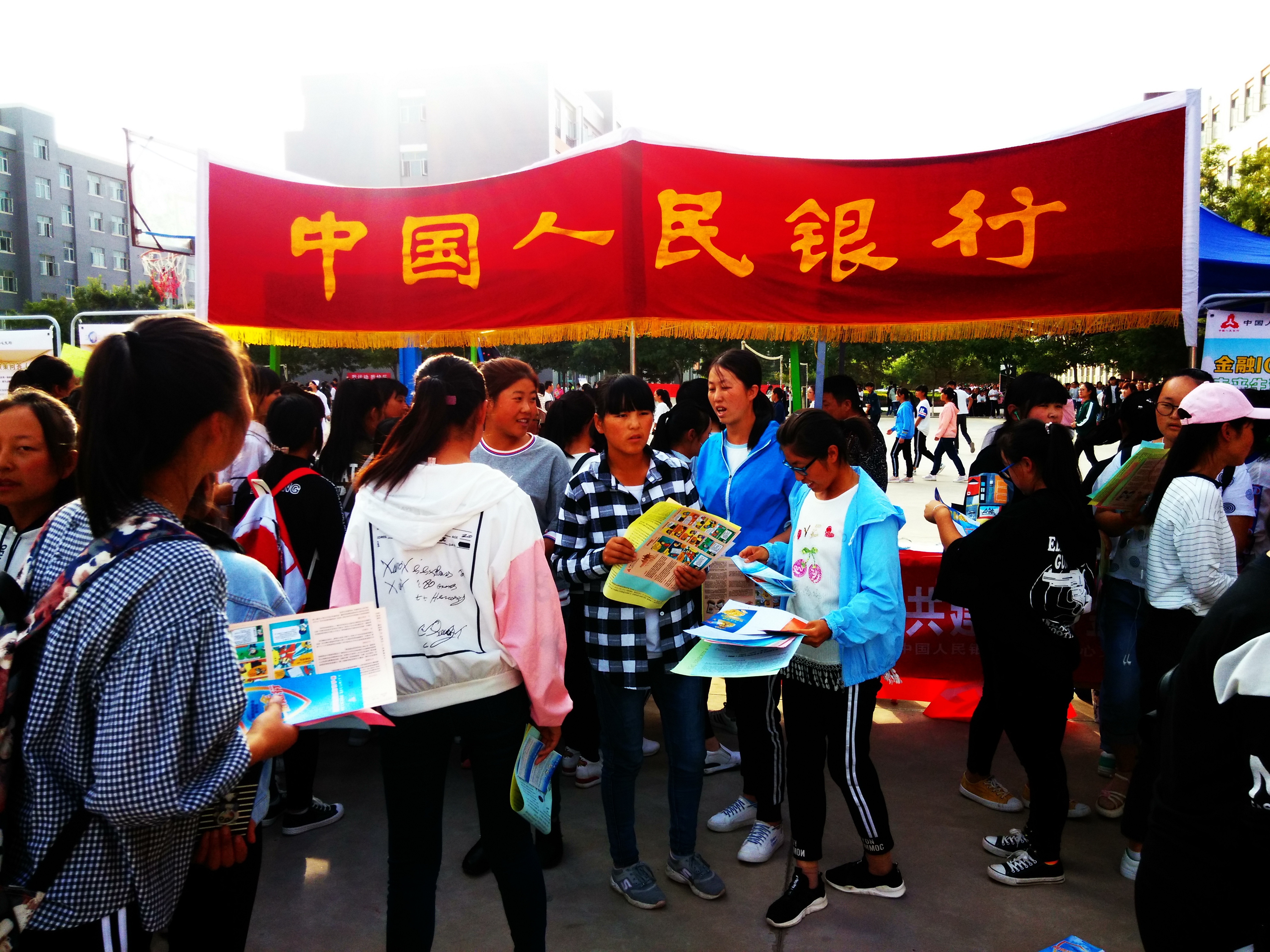 ???? 為幫助和引導(dǎo)大學(xué)生群體牢固樹立金融安全意識,9月21日下午,學(xué)生工作處邀請中國人民銀行武威分行、武威農(nóng)商銀行、交通銀行武威分行在學(xué)院尚德樓南操場開展了“送金融知識進(jìn)校園”宣傳活動,全院學(xué)生積極響應(yīng)號召,有1000余人參加了此次活動。