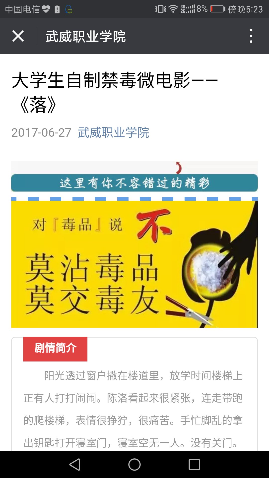 宣傳周期間,利用校園廣播、宣傳欄、新媒體等多種載體以及懸掛宣傳標(biāo)語、召開“無毒青春,健康生活”主題班會(huì)、觀看禁毒影片等多種形式,向廣大師生講述了新型毒品的種類、毒品對(duì)個(gè)人、對(duì)家庭、對(duì)社會(huì)的危害以及作為當(dāng)代大學(xué)生應(yīng)如何樹立正確的人生觀和價(jià)值觀,潔身自好,抵制誘惑,避免誤入歧途等常識(shí)。
