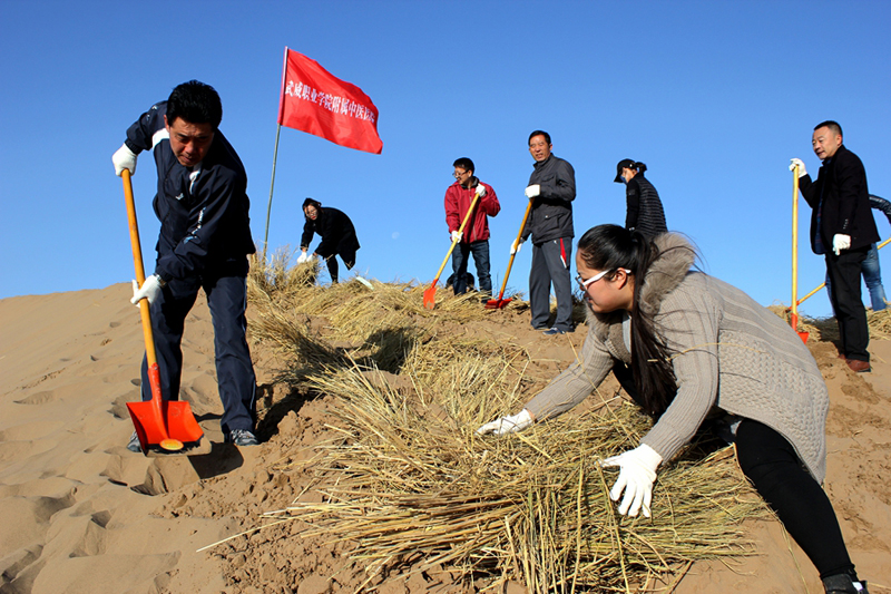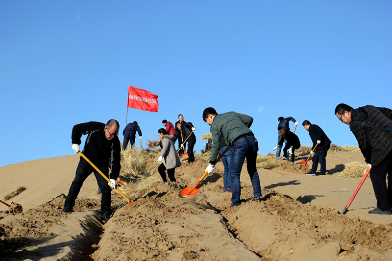 直屬附屬醫(yī)院組織干部職工赴八十里大沙參加義務壓沙治沙勞動