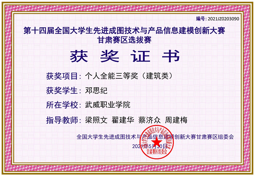第十四屆全國大學(xué)生先進(jìn)成圖技術(shù)與產(chǎn)品信息建模創(chuàng)新大賽甘肅賽區(qū)選拔賽獲個(gè)人全能三等獎(jiǎng)(建筑類)