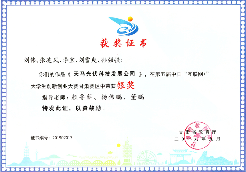 第五屆中國“互聯(lián)網(wǎng)+”大學(xué)生創(chuàng)新創(chuàng)業(yè)大賽甘肅賽區(qū)《天馬光伏科技發(fā)展公司》